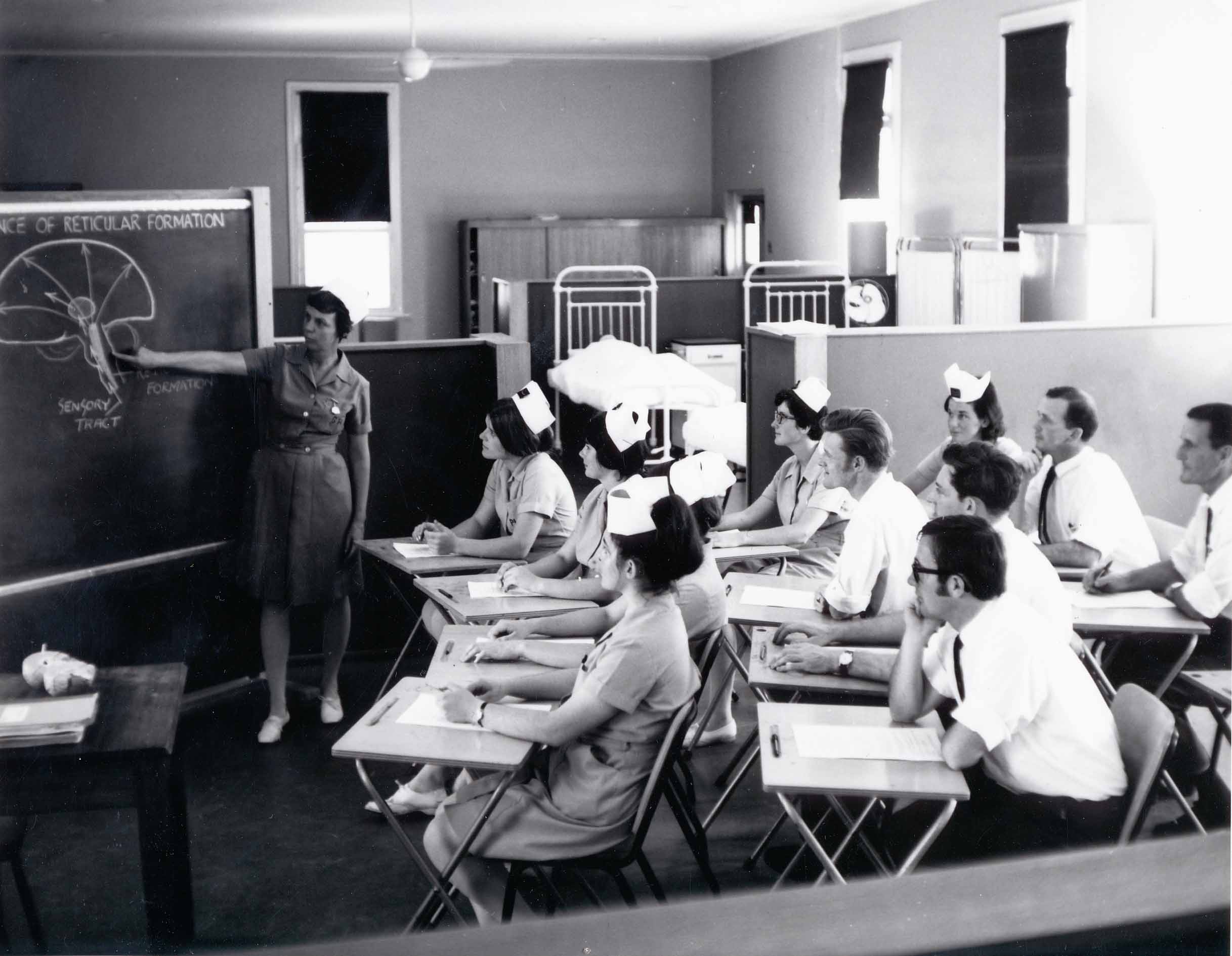 P 55, 1963 Nov 13, Nurses Training School over No 2 Fe Dining Room, Sr Phyl Wilson instructing Published June 26, 2013 at 2435 × 1890